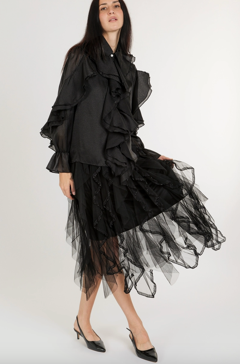 Embellished Ruffles Detail High-Waisted Maxi Skirt