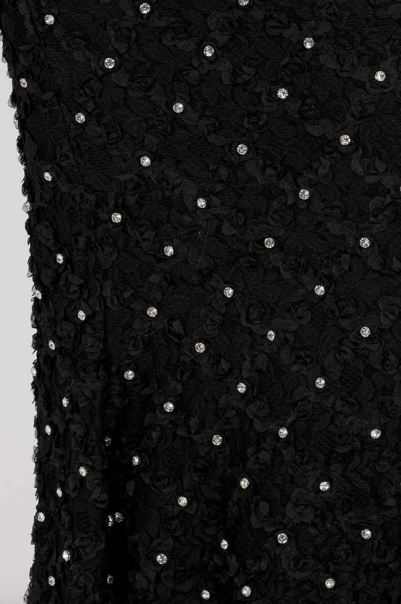 The long lace skirt is a showstopper. Studded with clear crystals it's just enough to turn heads without being "hey look at me". It has a full-length slip built into the skirt.