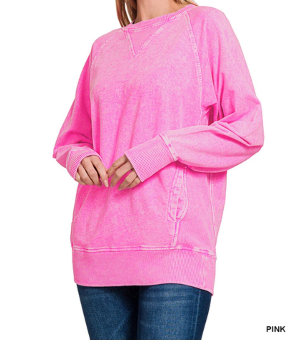 HALO-WASHED FRENCH TERRY ROUND-NECK PULLOVER